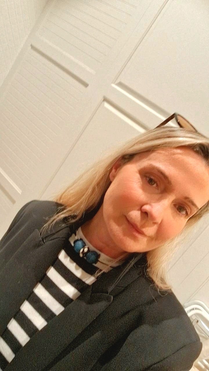 Choker de alpaca martillada a mano con pieza de hueso central y 2 piezas de cristal africano reciclado en azul intenso.