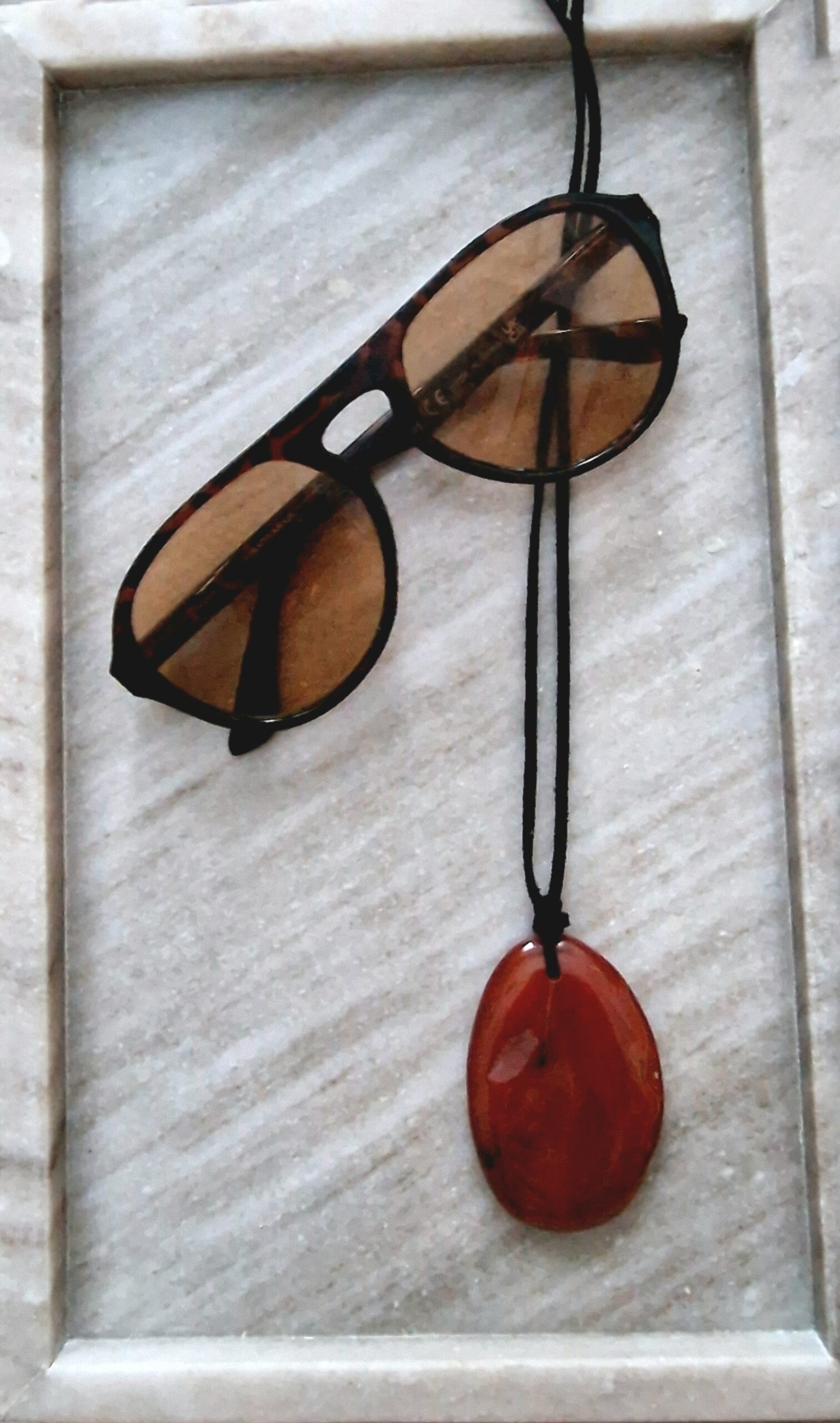 Collar largo de ante negro con Agata en color caldera,es pieza única.