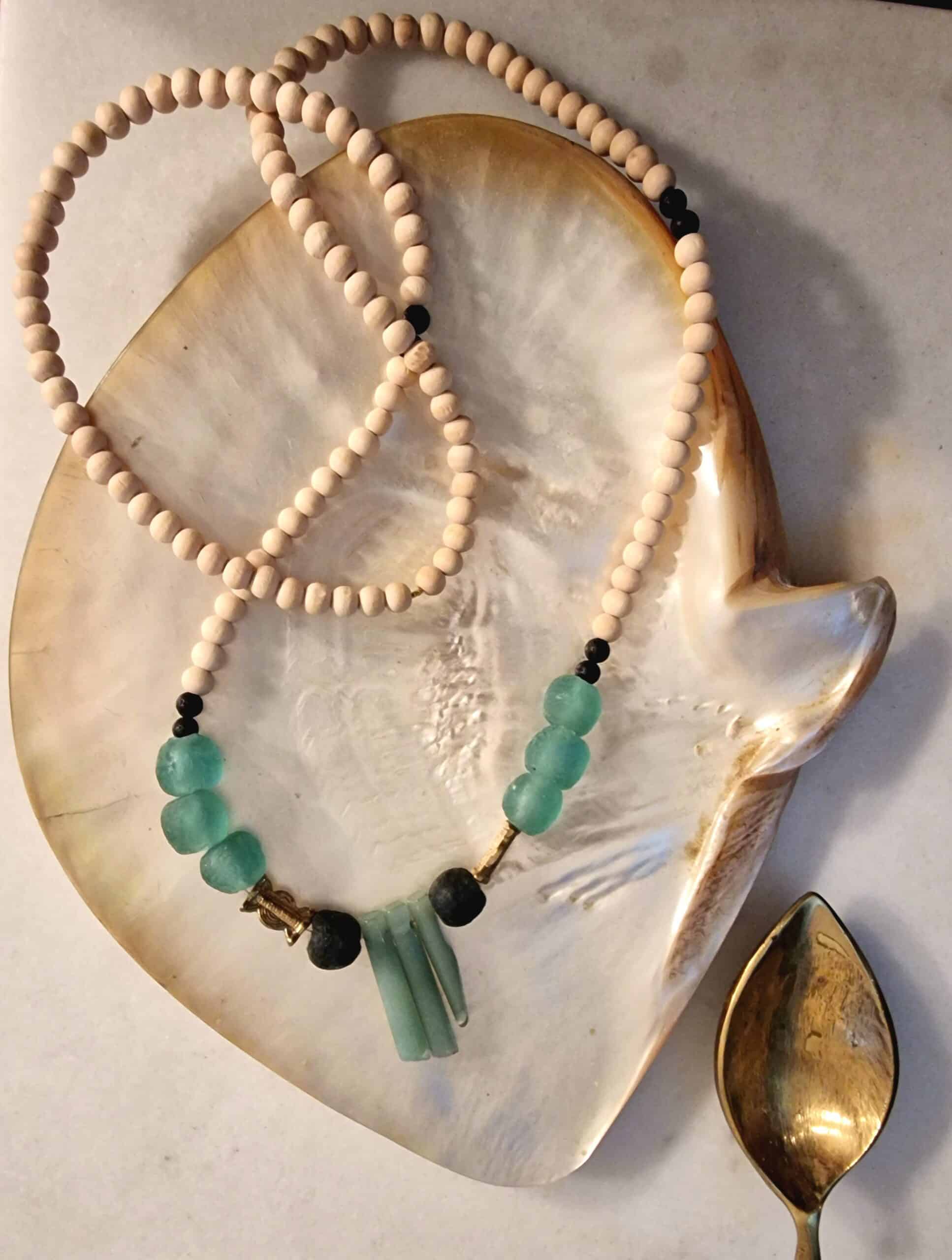 Collar de cuentas de cristal africano reciclado,agatas y madera